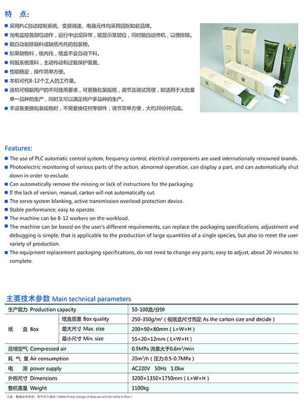 護膚品多功能自動裝盒機(帶自動折內托折盒機)